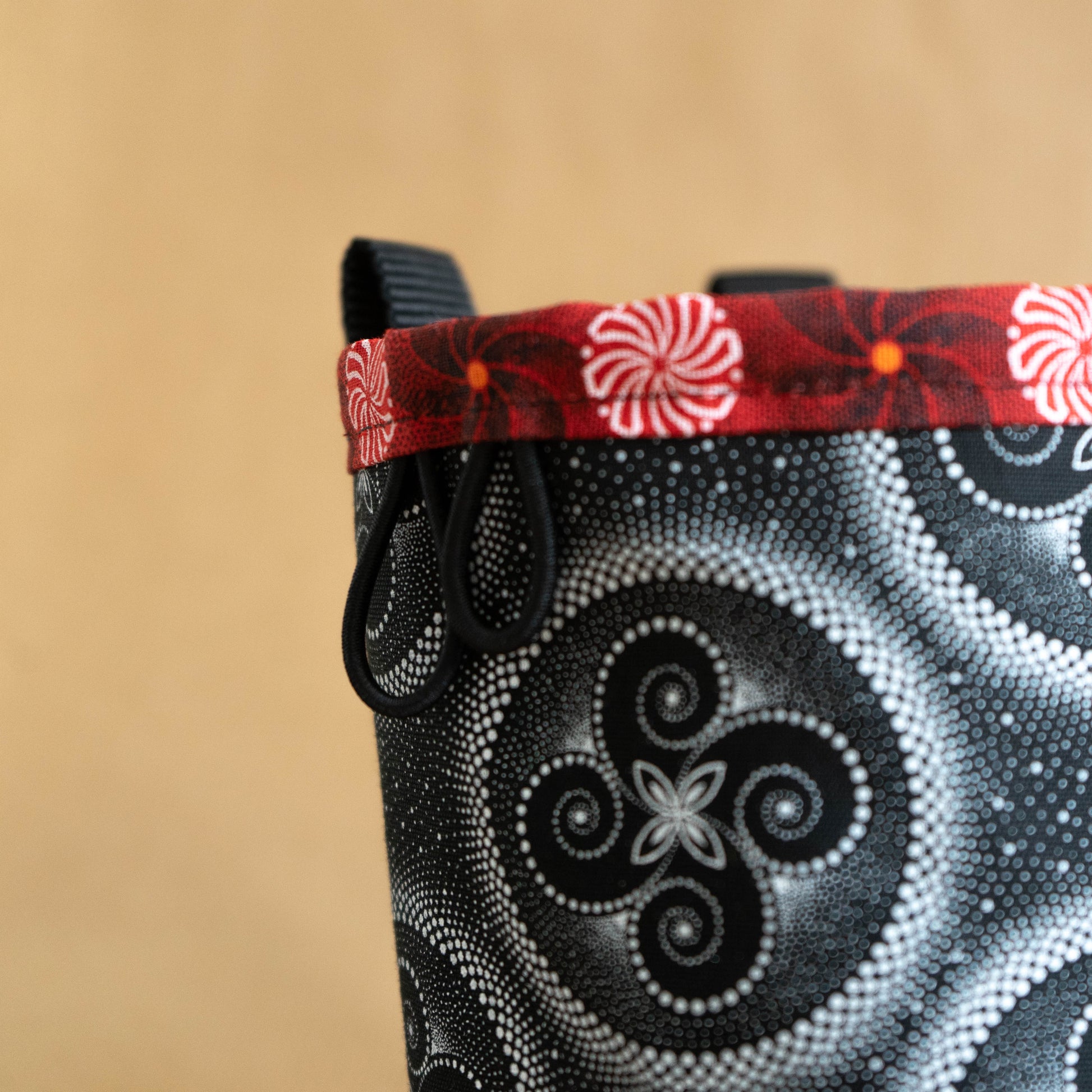 Mit den zwei verschieden großen Gummilaschen am Chalkbagrand kommst du nie in Verlegenheit, deine Bürsten unterzubringen. Alternativ passt an die Laschen ein Karabiner für diverse Kleinigkeiten wie Schlüssel, Tape oder eine Feile.