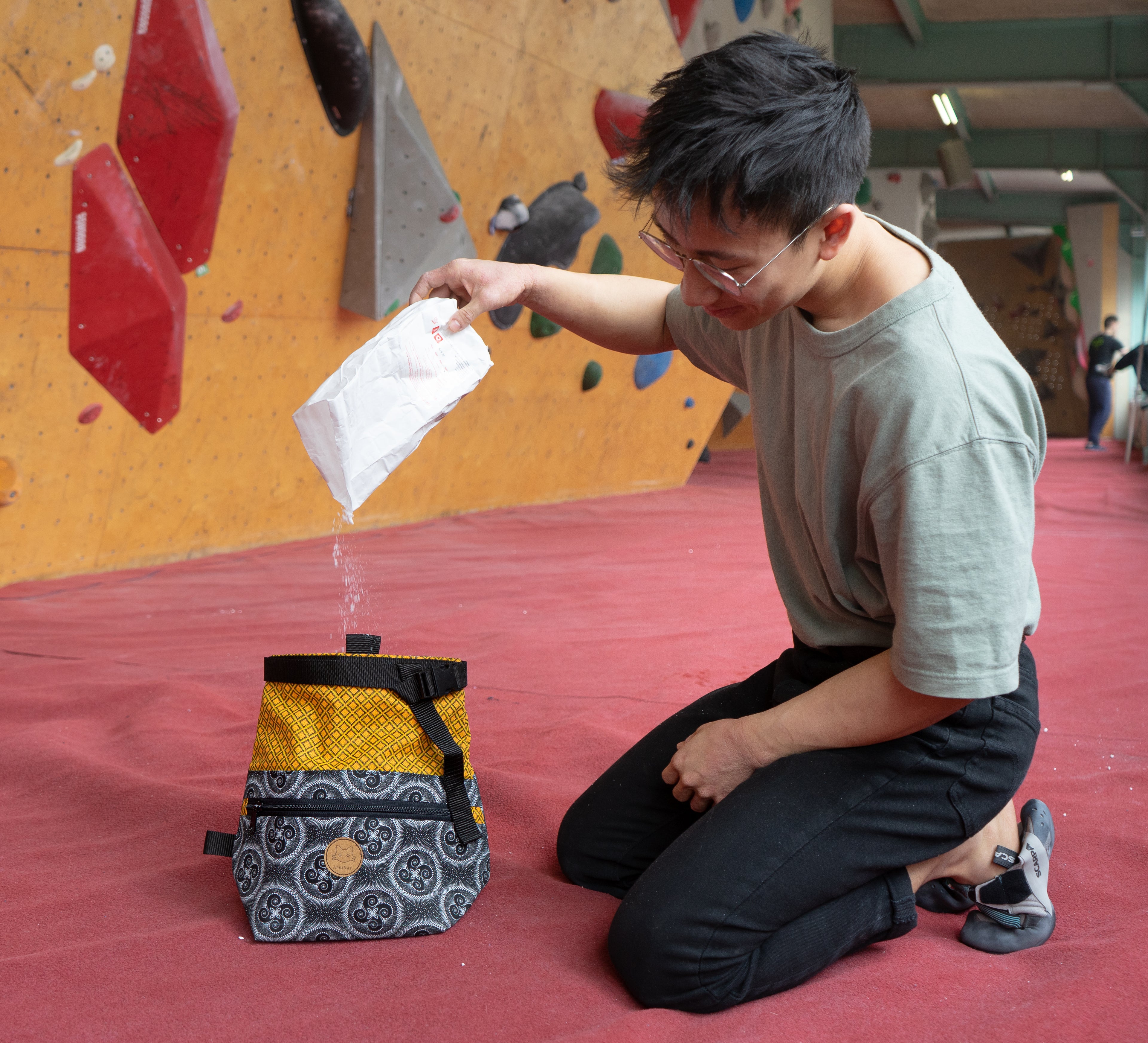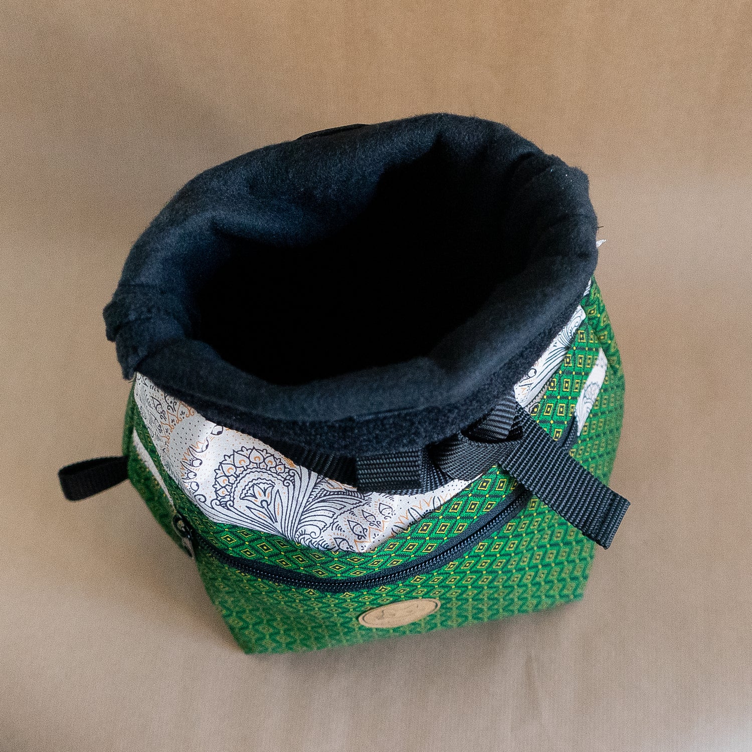 Mit einem festen Klettverschluss bleibt dein Chalk Bucket sicher zu. Über die zwei Gurtbandlaschen kannst du ihn dann problemlos öffnen, um an dein Chalk zu kommen.